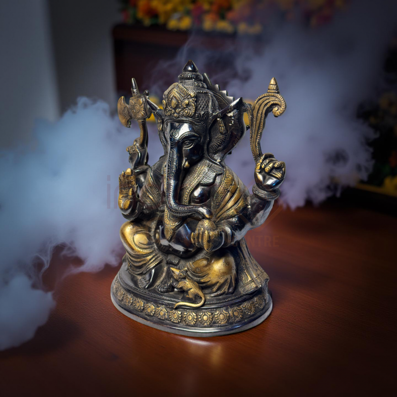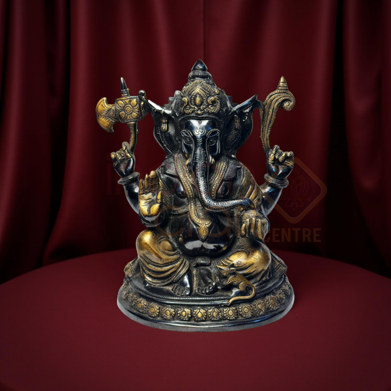 A Brass Ganesha is a statue of Lord Ganesha made from brass, commonly used for worship, home decor, and spiritual purposes. Lord Ganesha, the remover of obstacles and the god of wisdom, prosperity, and new beginnings, is highly revered in Hinduism.
