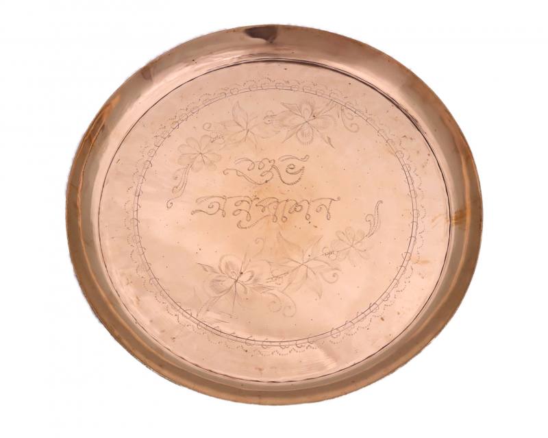 A Kansa Thali, also known as a Kansa Plate, is a traditional Indian dinner plate made of Kansa metal, which is an alloy of copper and tin. This type of plate is popular in Ayurveda for serving food due to its believed health benefits. Kansa metal is said to have properties that can help balance the doshas (Vata, Pitta, and Kapha) according to Ayurvedic principles. Using Kansa Thali for eating is believed to impart certain health benefits, such as improved digestion and overall well-being.