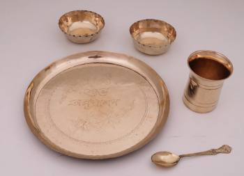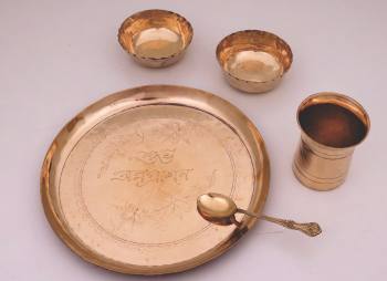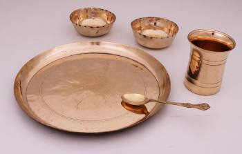 Number of Pieces: A typical Kansa Thali set include 1Thali (plates), 2 Katoris (bowls), and 1 glasses, and 1 Spoon