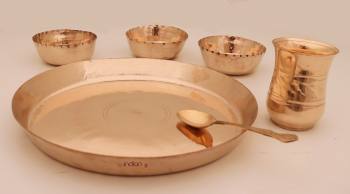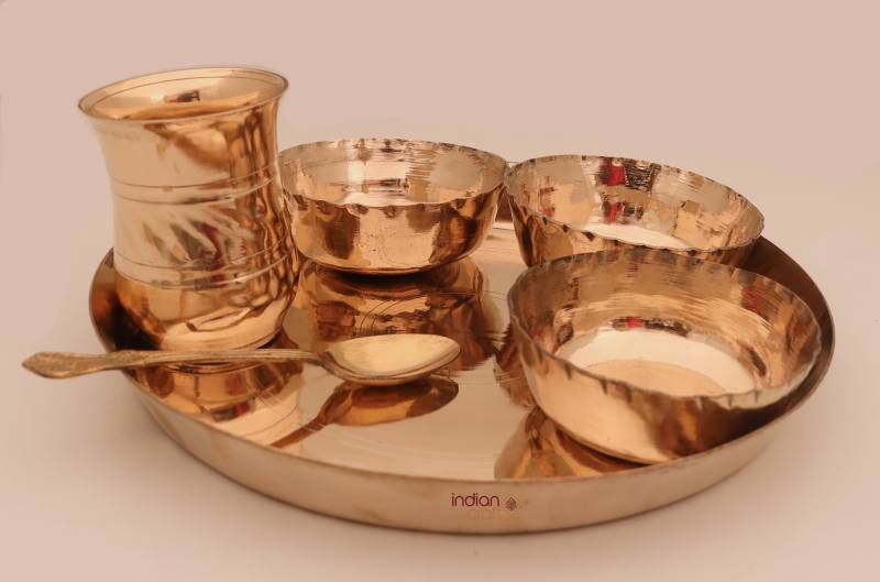 Number of Pieces: A typical Kansa Thali set include 1Thali (plates), 3 Katoris (bowls), and 1 glasses, and 1 Spoon