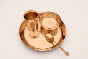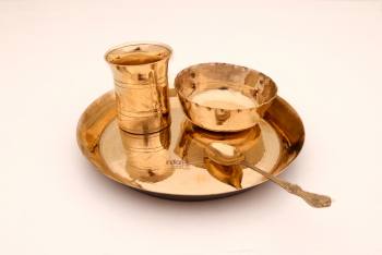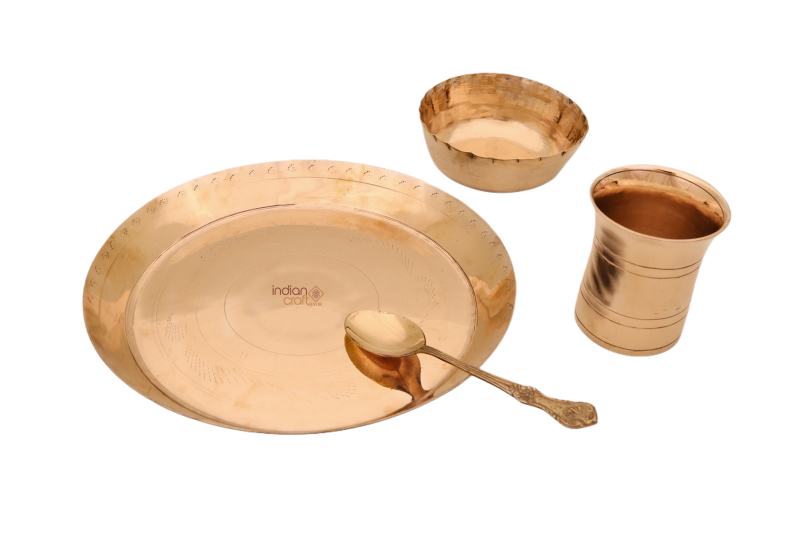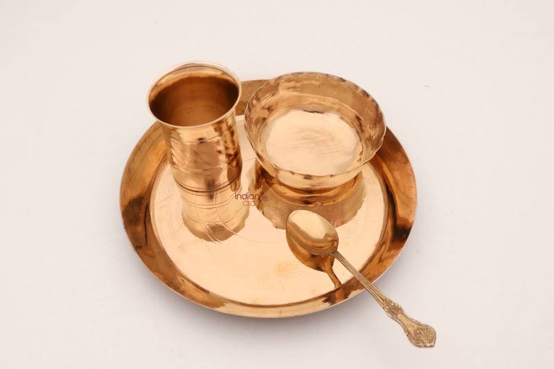 Number of Pieces: A typical Kansa Thali set include 1Thali (plates), 1 Katoris (bowls), and 1 glasses, and 1 Spoon