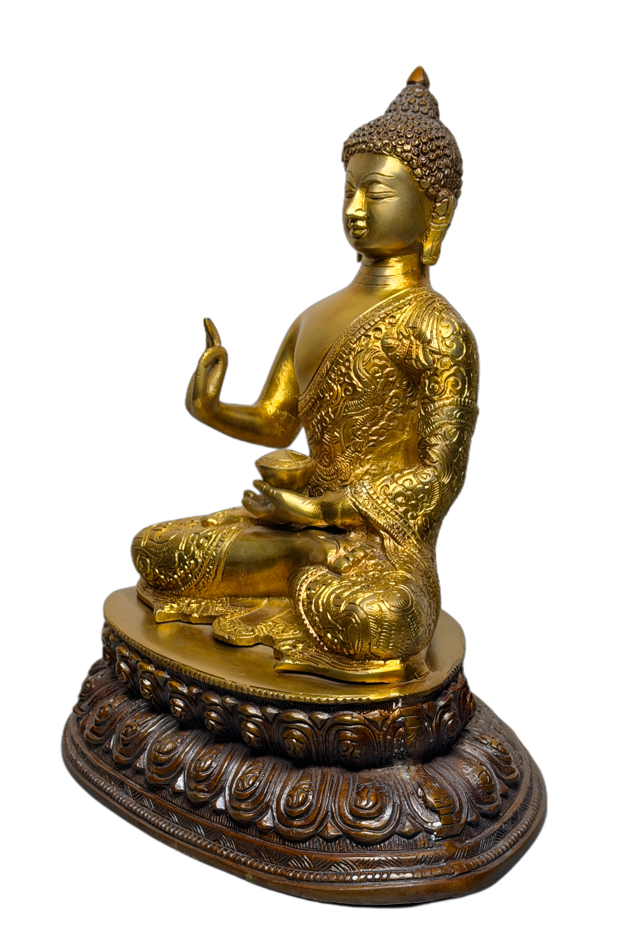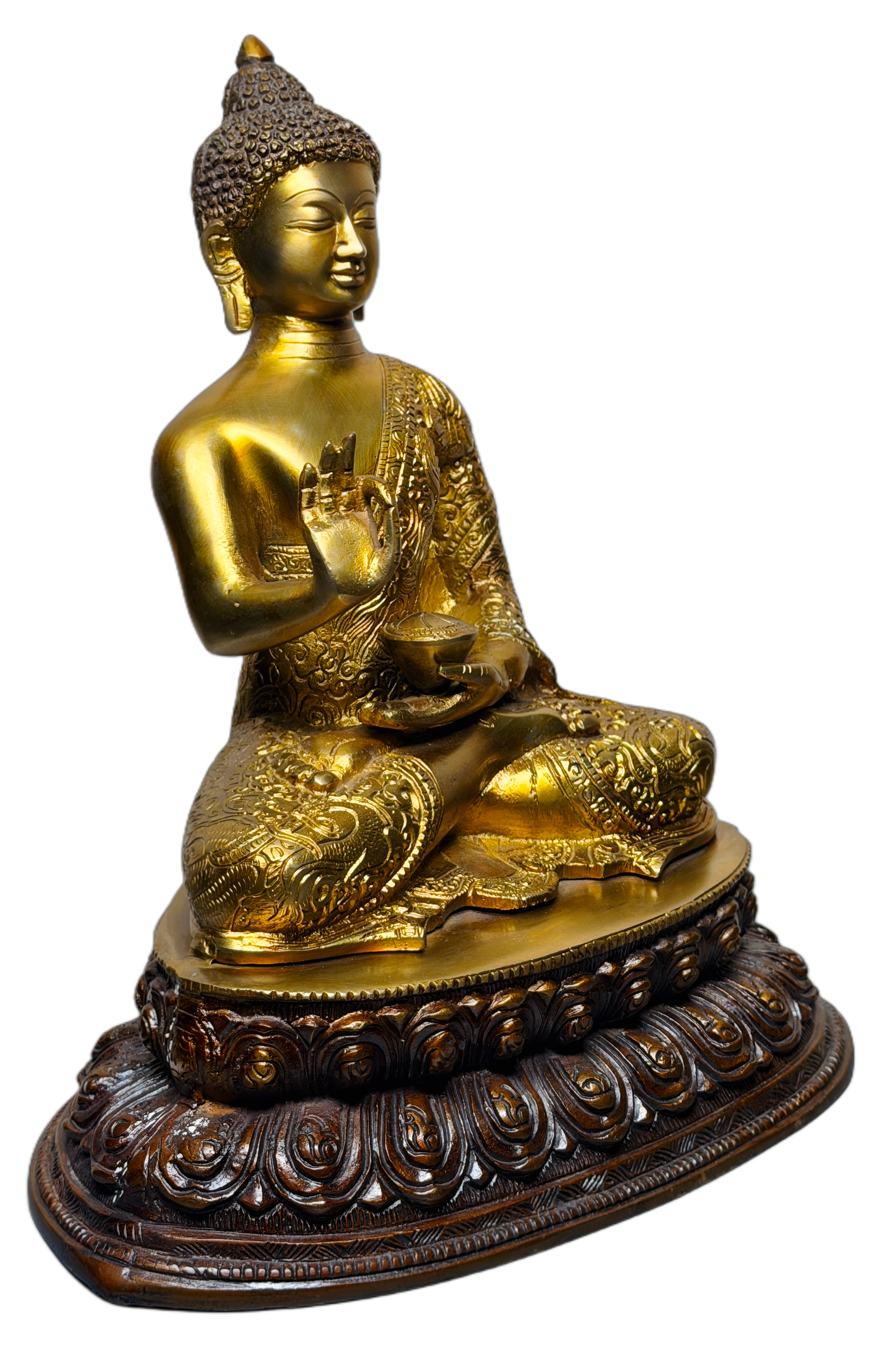 Finished in a luxurious gold tone with antique bronze base accents, this Buddha Murti enhances spiritual ambience and creates a soothing focal point in any setting. Perfect for meditation rooms, home décor, yoga spaces, spas, wellness centres, office environments, and meaningful gifting, it is believed to attract peace, mindfulness, positivity, and balanced energy.