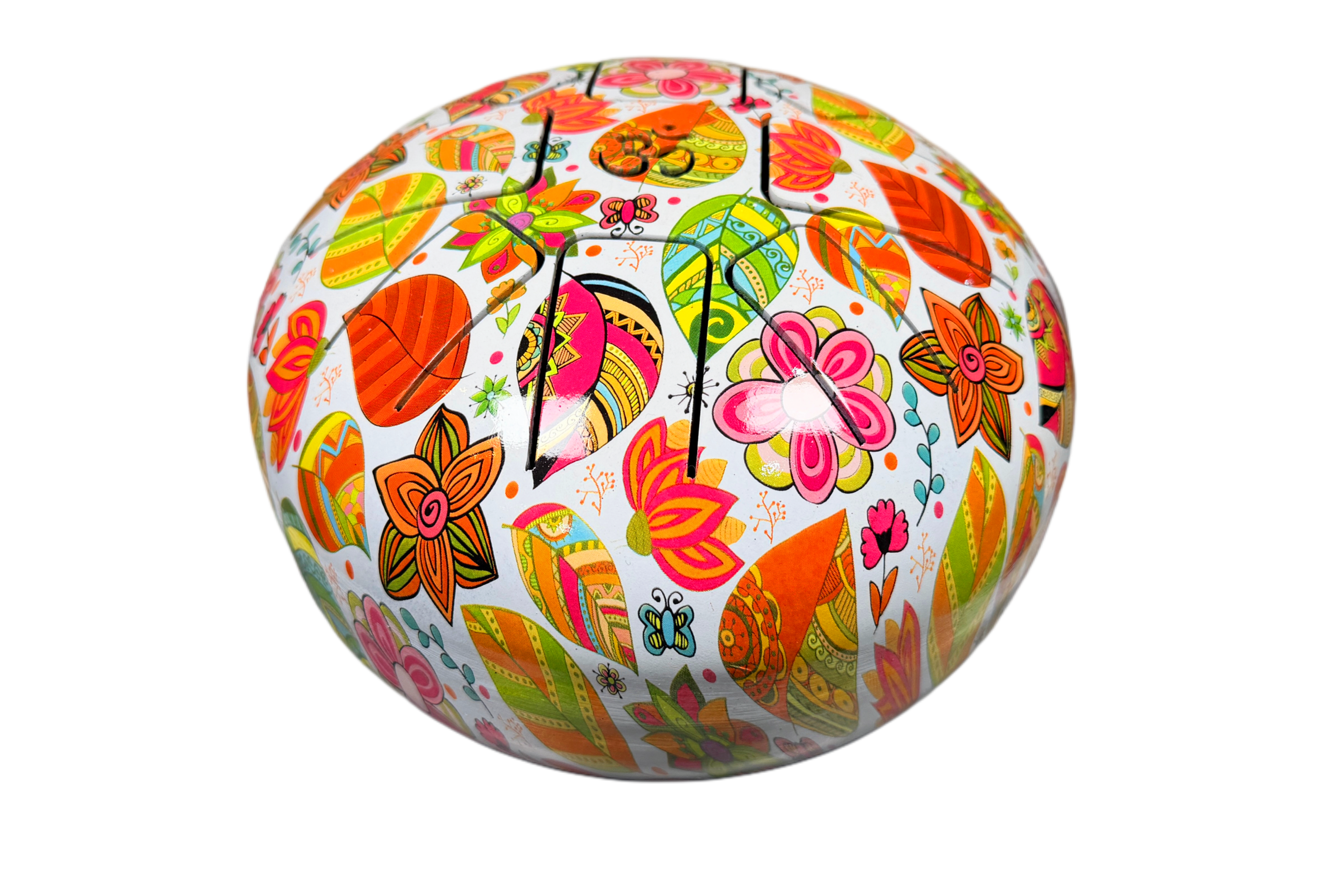 Experience soothing melodies and vibrant energy with our Hand-Painted HAPI Steel Tongue Drum, crafted for meditation, music therapy, yoga, classroom use, and personal relaxation.Each drum is beautifully decorated with an intricate multicolor artisan design, making it not just a musical instrument but also a unique decorative art piece.This compact 7-inch drum produces clear, warm, melodic tones with a calming vibration, perfect for beginners as well as professional sound healers.