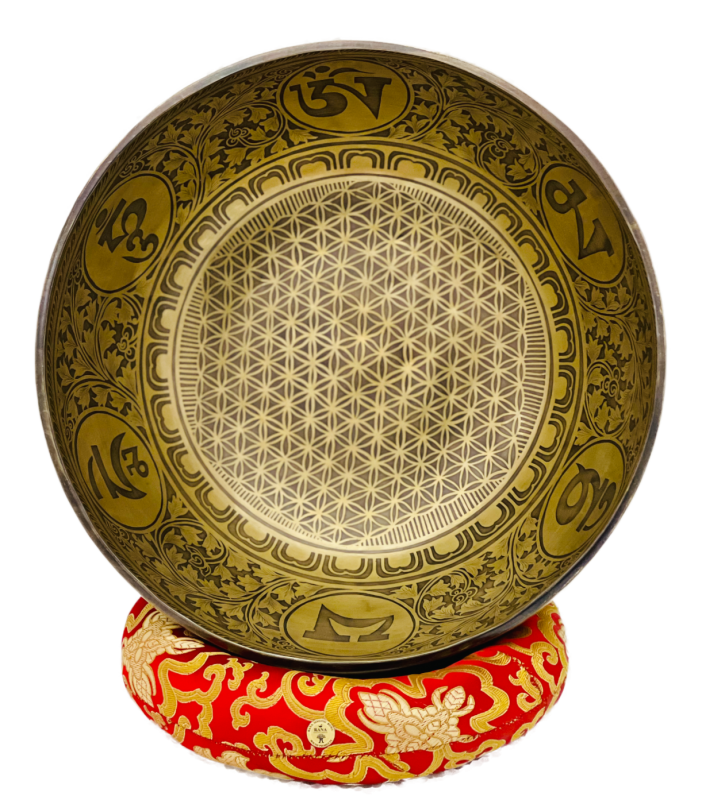 Flowe Of Life Singing Bowls are used for deep meditation and protection from various painful and common diseases.The resonance of the sweet musical tunes smoothen the environment, calms the mind and bring relief to the whole body.They are used to help treat cancer patients and also for post-traumatic stress disorder.use mallets to strike or circle the bowls in a particular sequence, creating sound and vibrations. Engraving Singing Bowl Design Made by Professional Desiginer Only , Hand Made Design Only