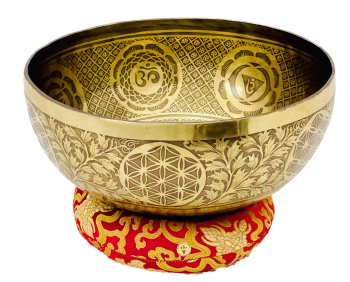 Flowe Of Life Singing Bowls are used for deep meditation and protection from various painful and common diseases.The resonance of the sweet musical tunes smoothen the environment, calms the mind and bring relief to the whole body.They are used to help treat cancer patients and also for post-traumatic stress disorder.use mallets to strike or circle the bowls in a particular sequence, creating sound and vibrations. Engraving Singing Bowl Design Made by Professional Desiginer Only , Hand Made Design Only