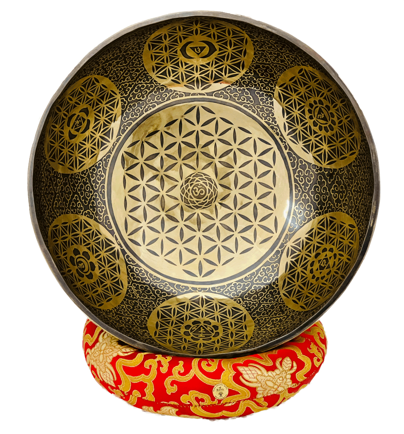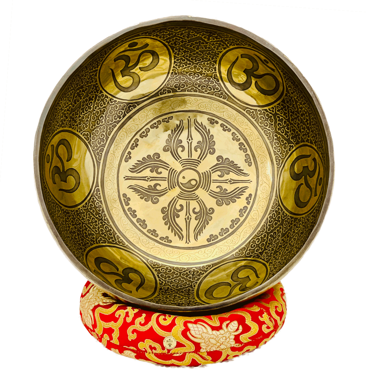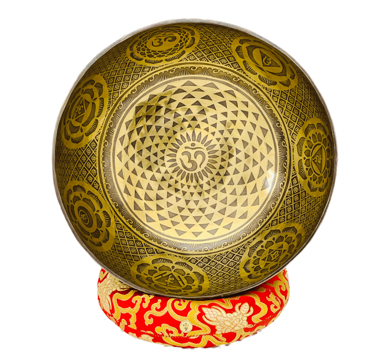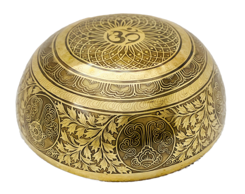 OMM Engraving Singing Bowls are used for deep meditation and protection from various painful and common diseases.The resonance of the sweet musical tunes smoothen the environment, calms the mind and bring relief to the whole body.They are used to help treat cancer patients and also for post-traumatic stress disorder.use mallets to strike or circle the bowls in a particular sequence, creating sound and vibrations. Engraving Singing Bowl Design Made by Professional Desiginer Only , Laser Made Design.