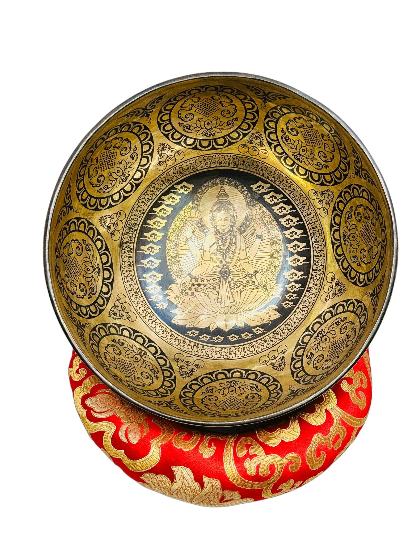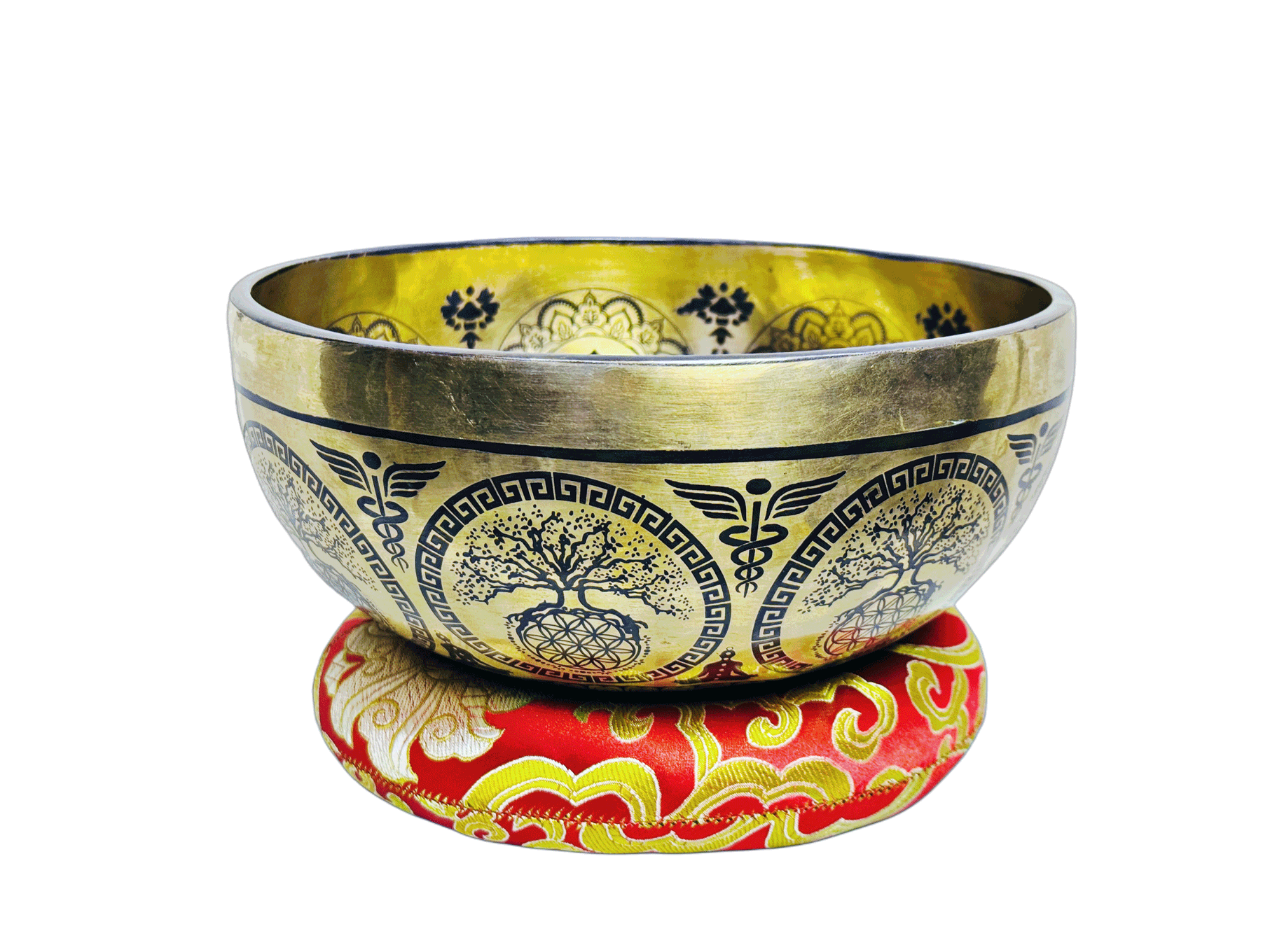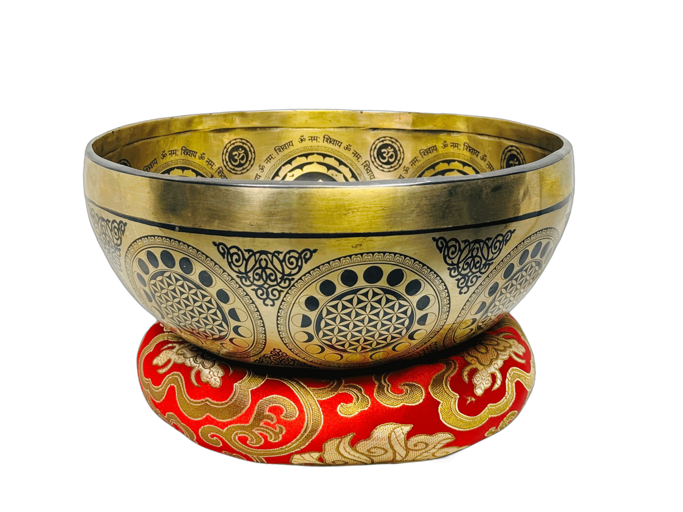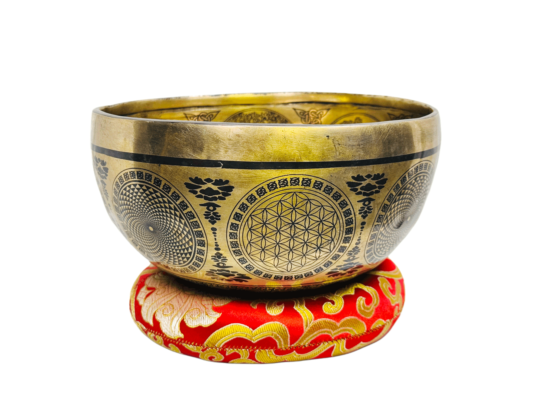 OMM Engraving Singing Bowls are used for deep meditation and protection from various painful and common diseases.The resonance of the sweet musical tunes smoothen the environment, calms the mind and bring relief to the whole body.They are used to help treat cancer patients and also for post-traumatic stress disorder.use mallets to strike or circle the bowls in a particular sequence, creating sound and vibrations. Engraving Singing Bowl Design Made by Professional Desiginer Only , Laser Made Design.