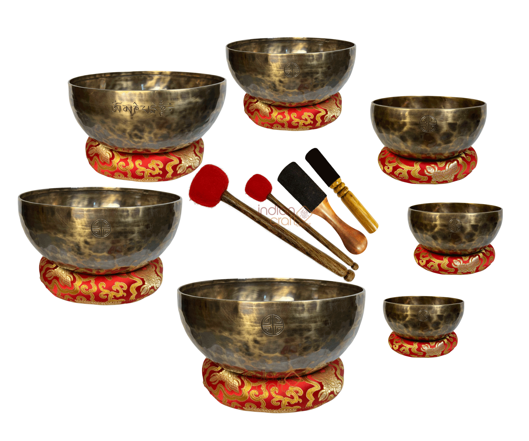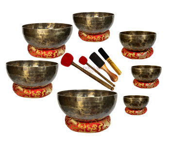 A Full Moon Singing Bowl Set typically refers to a set of handcrafted Tibetan singing bowls that are traditionally made under the light of a full moon. These bowls are believed to carry special lunar energy, enhancing their vibrational qualities and healing properties.