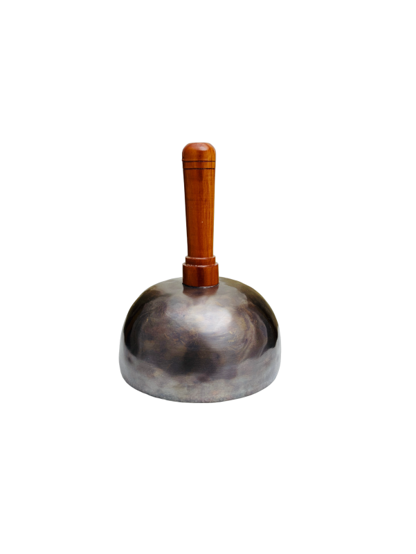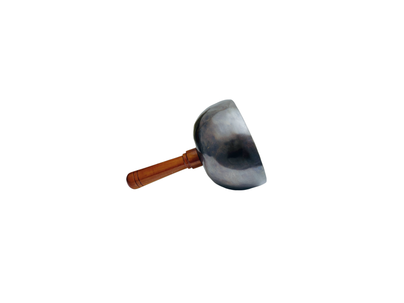 Handheld Brass Singing Bowl with Wooden Handle Experience the soothing and resonant tones of this Handheld Bronze singing bowl, thoughtfully designed for ease of use and deep relaxation. Unlike traditional singing bowls, this unique design features a sturdy wooden handle, allowing for a comfortable grip and effortless playing. Whether used for meditation, yoga, or sound therapy, this singing bowl produces harmonious vibrations that promote tranquility and mindfulness.
