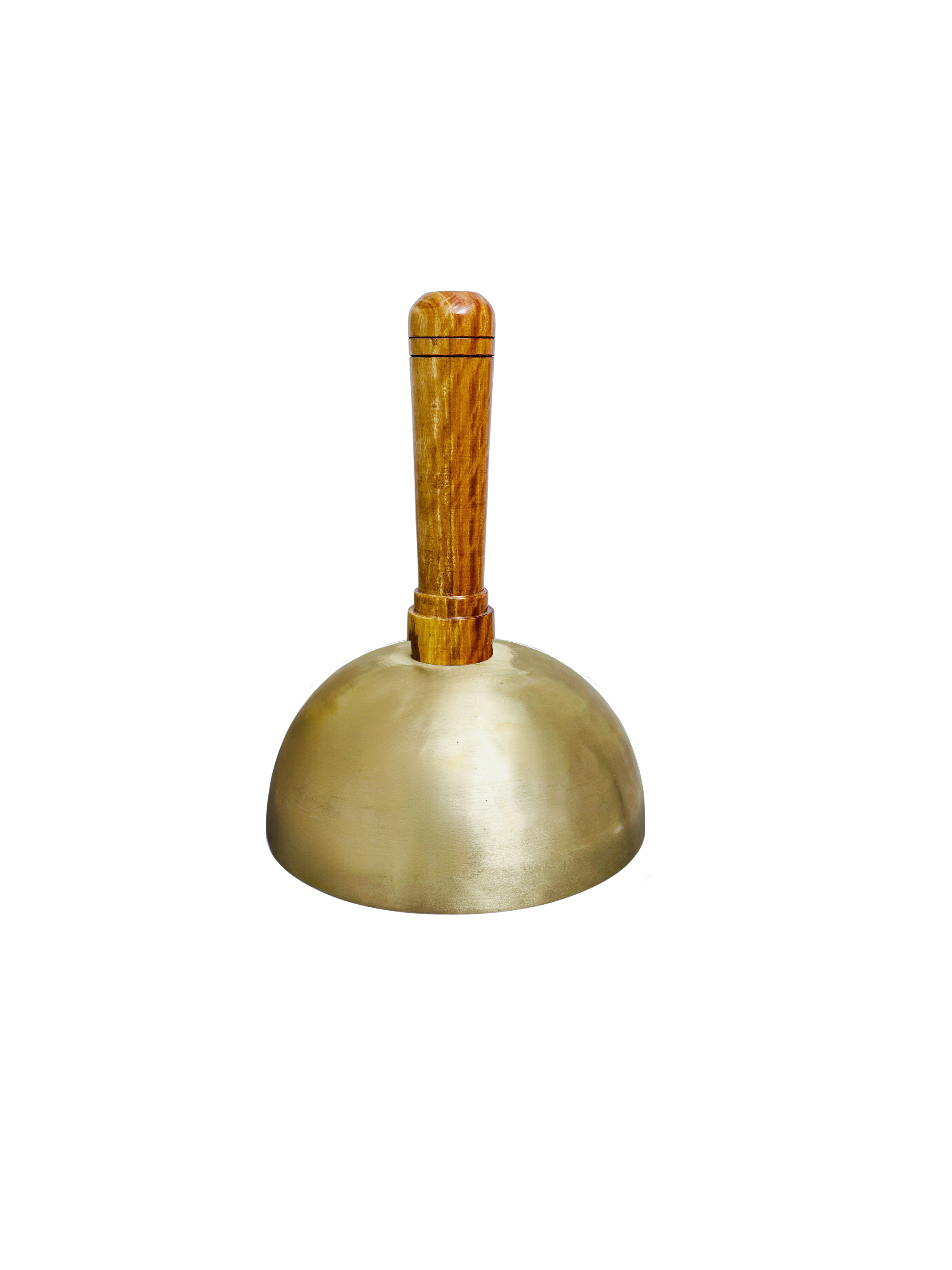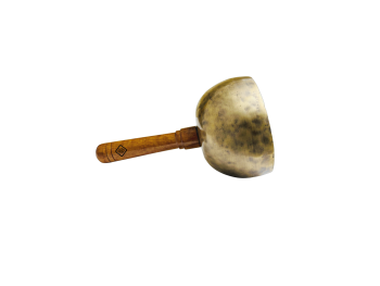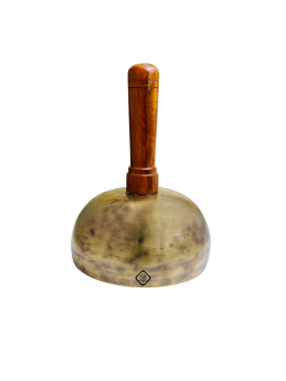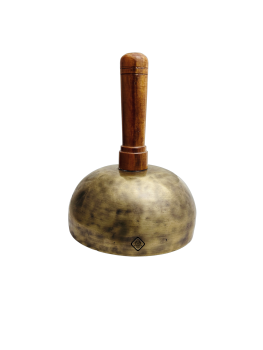 small Handheld Brass Singing Bowl with Wooden Handle Experience the soothing and resonant tones of this Handheld Bronze singing bowl, thoughtfully designed for ease of use and deep relaxation. Unlike traditional singing bowls, this unique design features a sturdy wooden handle, allowing for a comfortable grip and effortless playing. Whether used for meditation, yoga, or sound therapy, this singing bowl produces harmonious vibrations that promote tranquility and mindfulness.