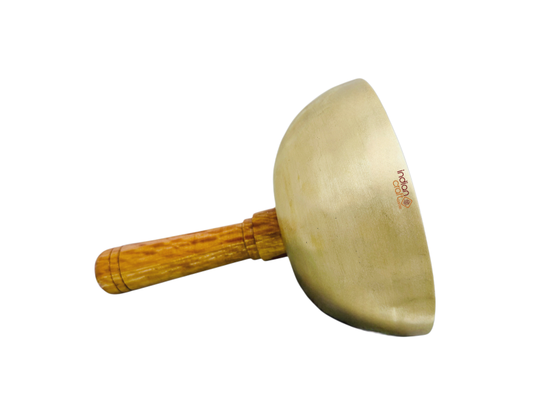 Handheld Brass Singing Bowl with Wooden Handle Experience the soothing and resonant tones of this Handheld Bronze singing bowl, thoughtfully designed for ease of use and deep relaxation. Unlike traditional singing bowls, this unique design features a sturdy wooden handle, allowing for a comfortable grip and effortless playing. Whether used for meditation, yoga, or sound therapy, this singing bowl produces harmonious vibrations that promote tranquility and mindfulness.