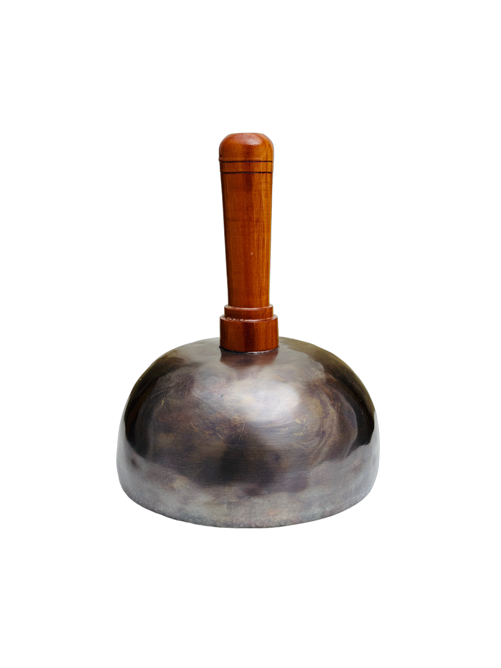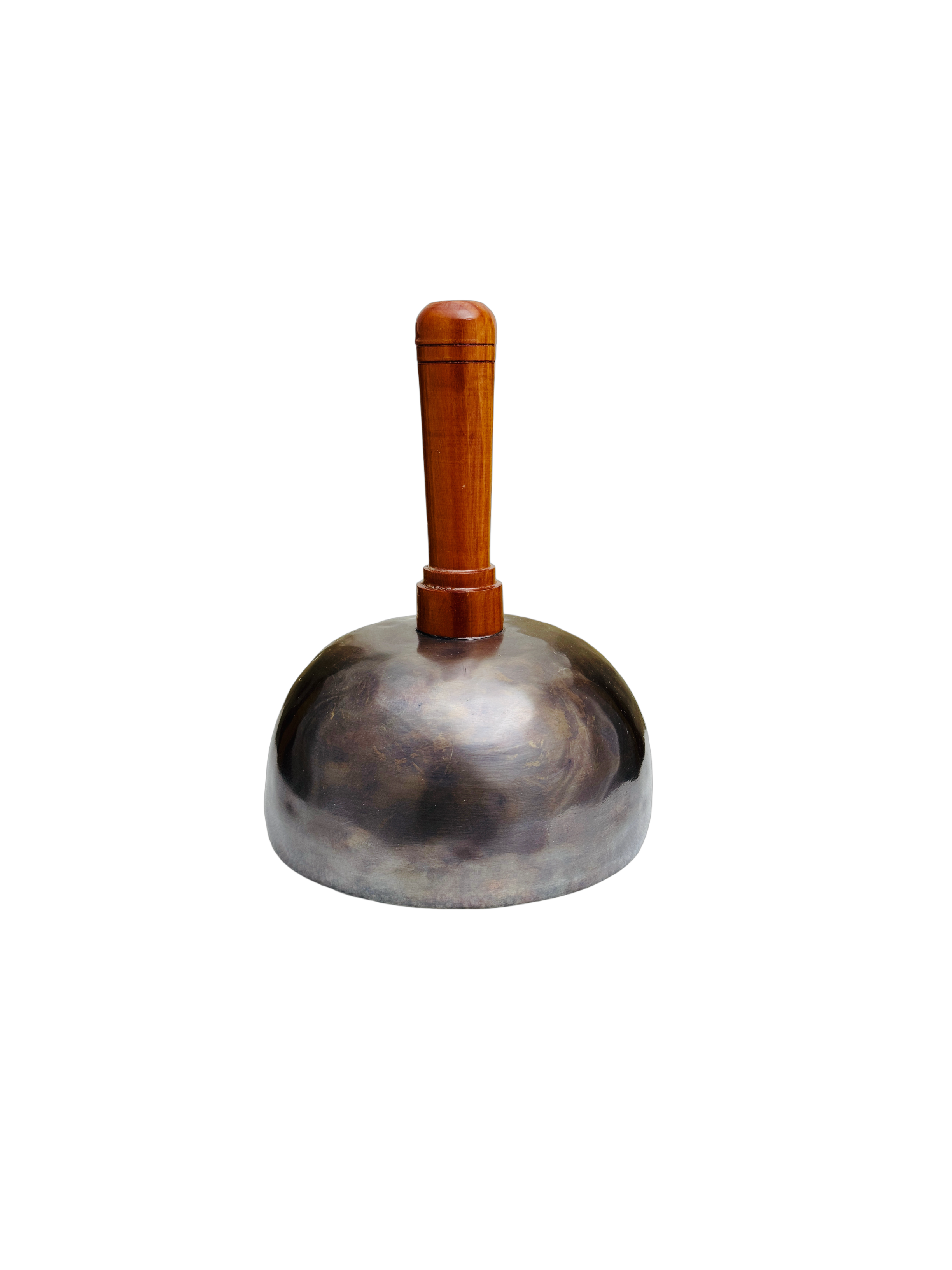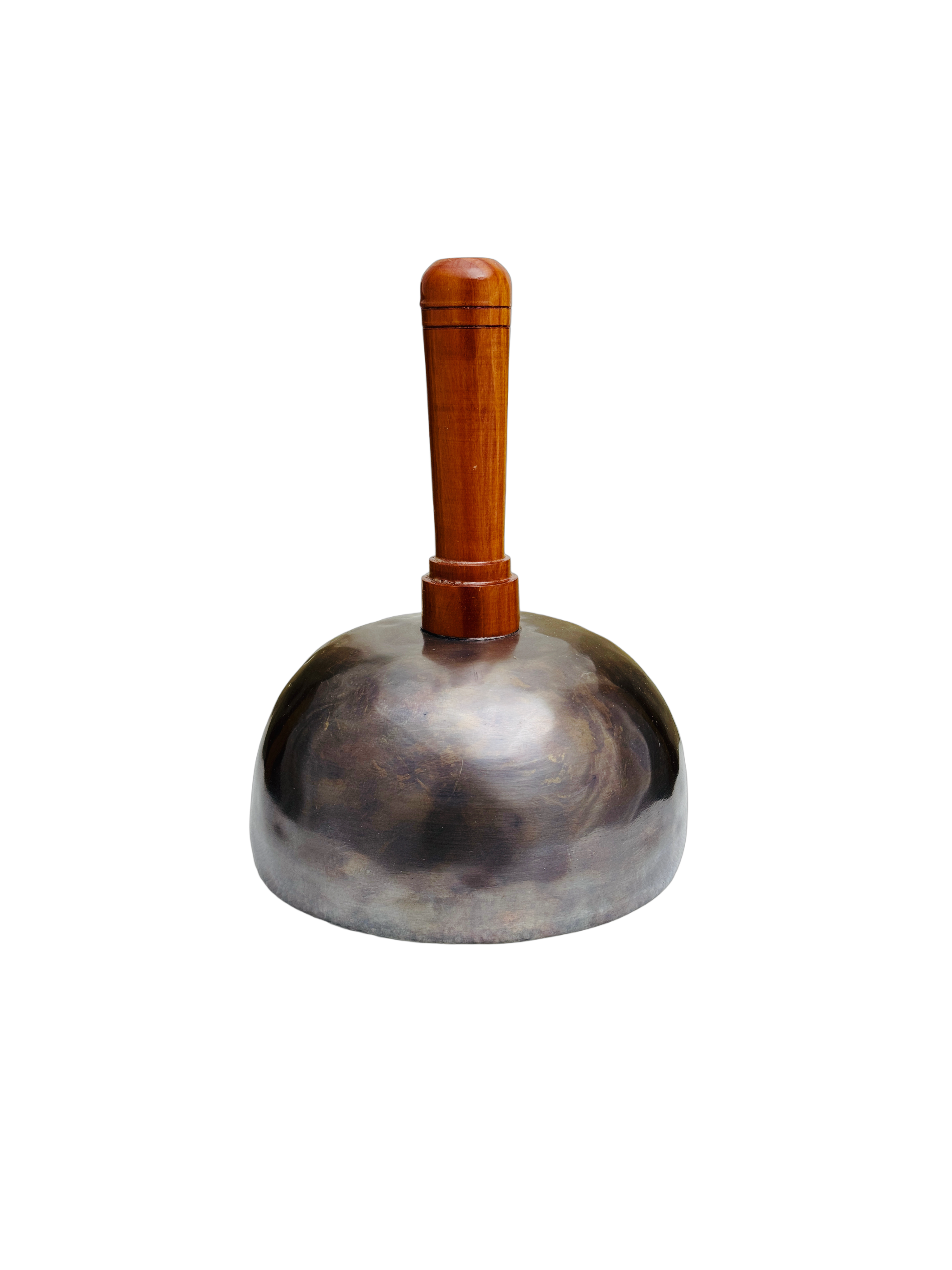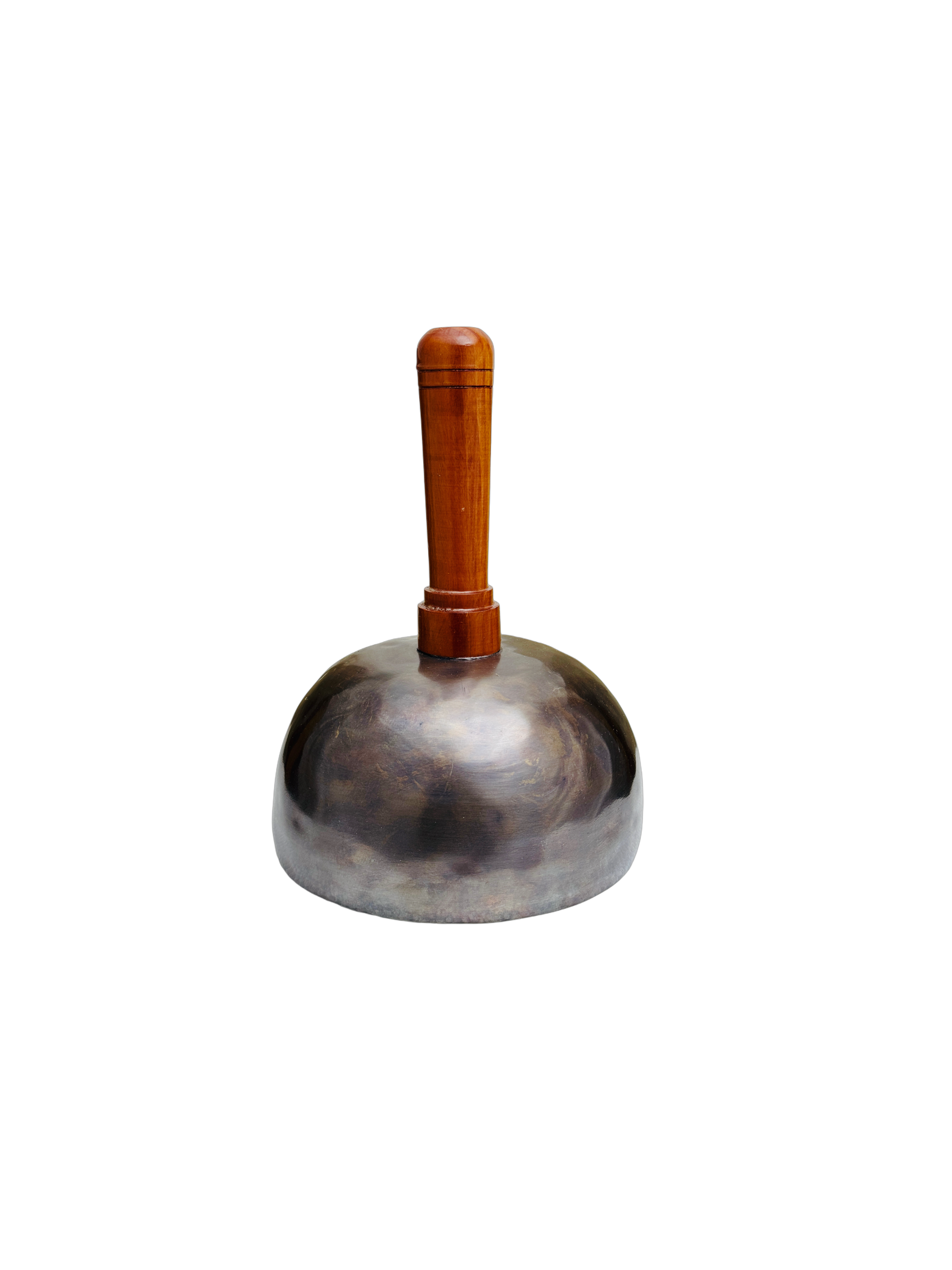 Handheld Brass Singing Bowl with Wooden Handle Experience the soothing and resonant tones of this Handheld Bronze singing bowl, thoughtfully designed for ease of use and deep relaxation. Unlike traditional singing bowls, this unique design features a sturdy wooden handle, allowing for a comfortable grip and effortless playing. Whether used for meditation, yoga, or sound therapy, this singing bowl produces harmonious vibrations that promote tranquility and mindfulness.