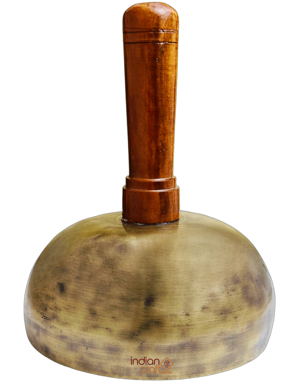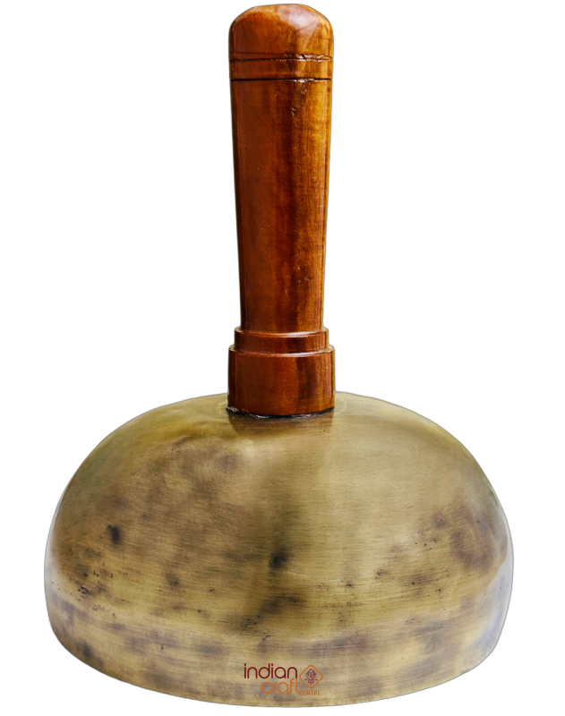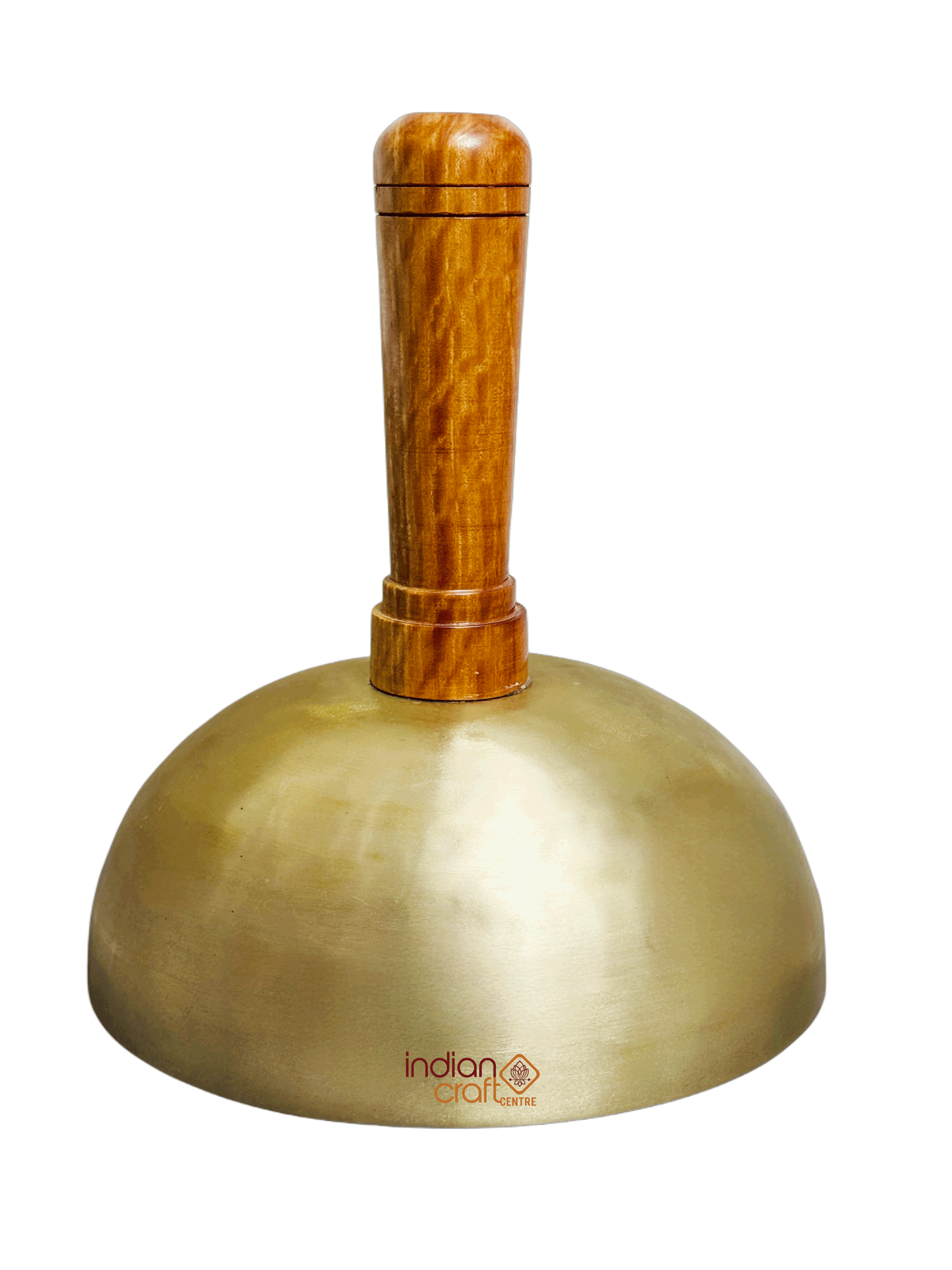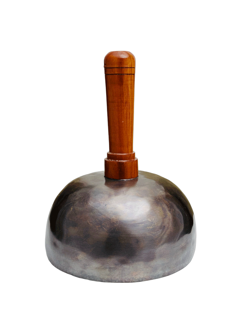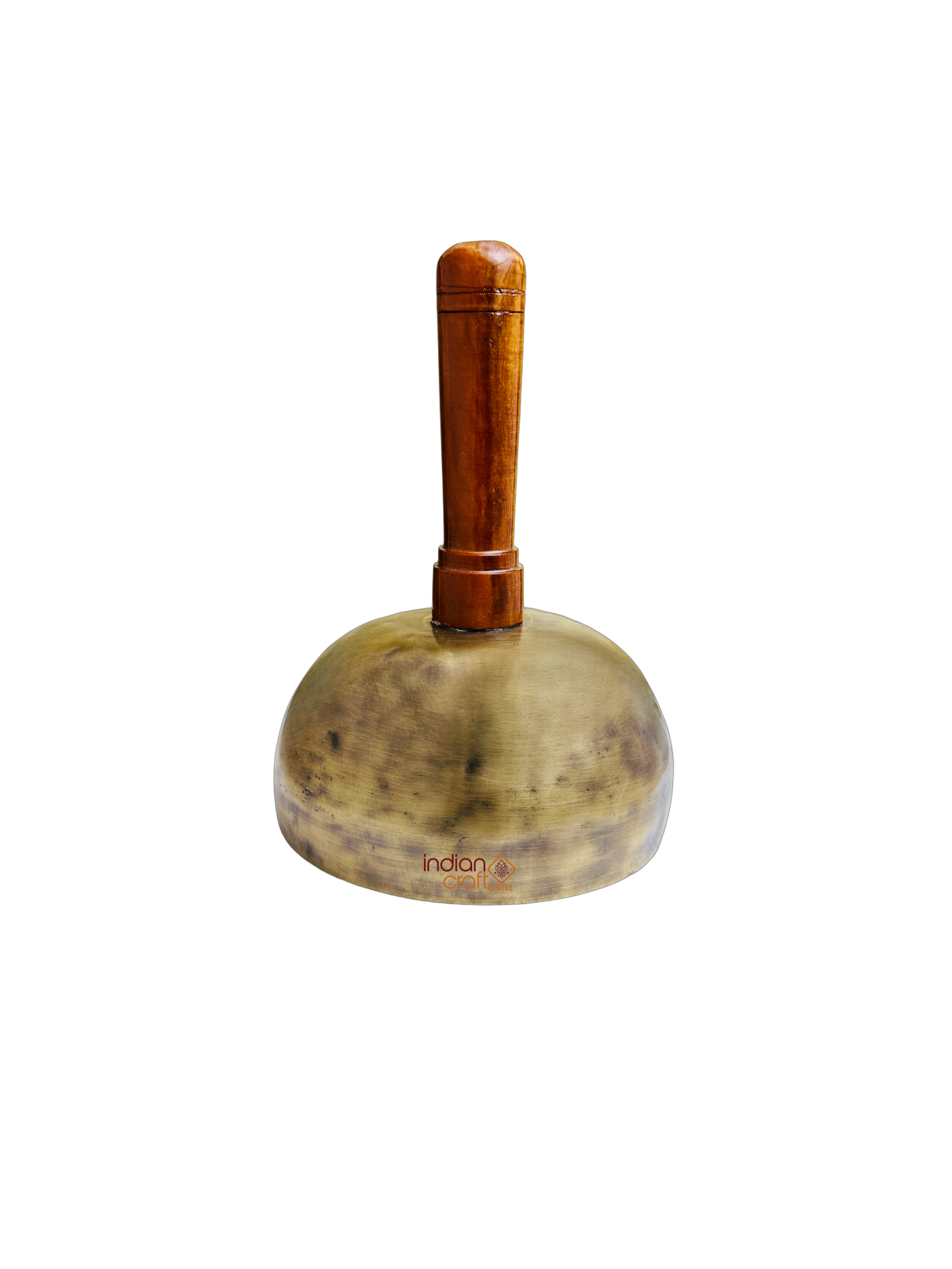 Handheld Brass Singing Bowl with Wooden Handle Experience the soothing and resonant tones of this Handheld Bronze singing bowl, thoughtfully designed for ease of use and deep relaxation. Unlike traditional singing bowls, this unique design features a sturdy wooden handle, allowing for a comfortable grip and effortless playing. Whether used for meditation, yoga, or sound therapy, this singing bowl produces harmonious vibrations that promote tranquility and mindfulness.