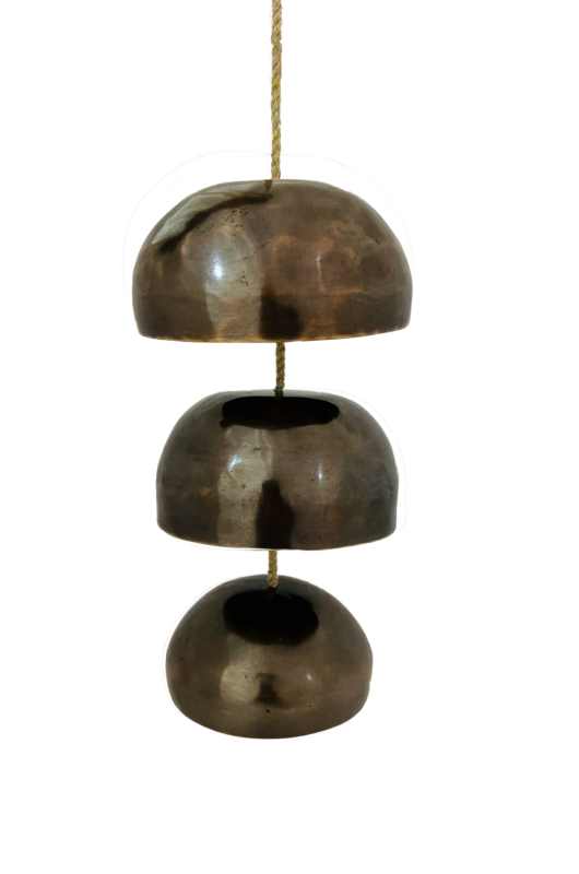 • Design: The three-tiered structure consists of dome-shaped bowls, each hanging at a different level, allowing for layered resonance when struck or moved.