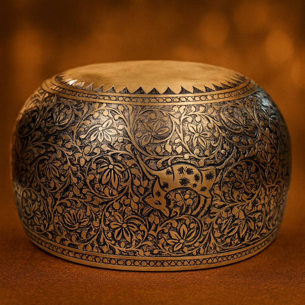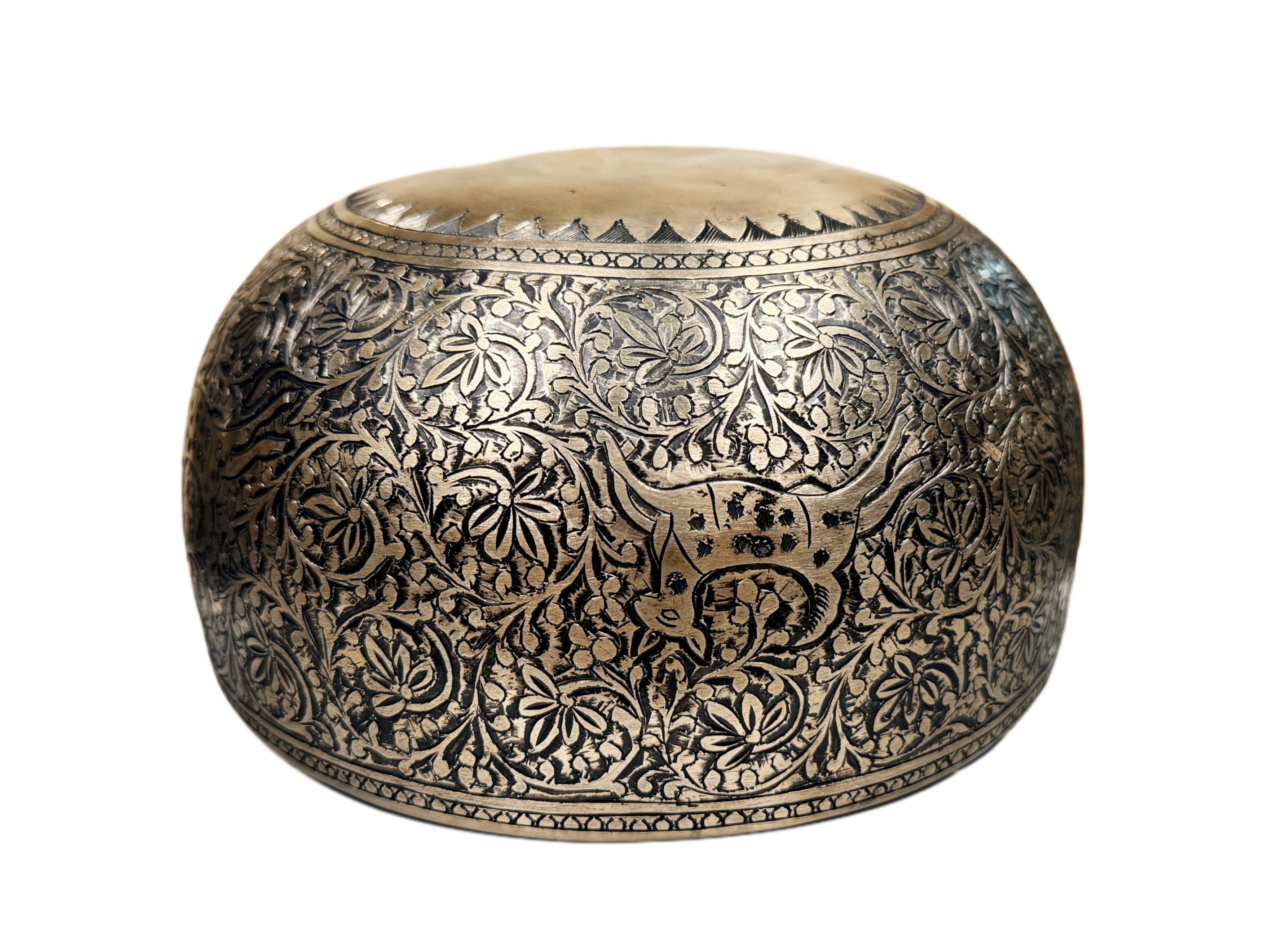 Traditional hand-hammering and deep engraving methods ensure every bowl is unique and full of spiritual character.