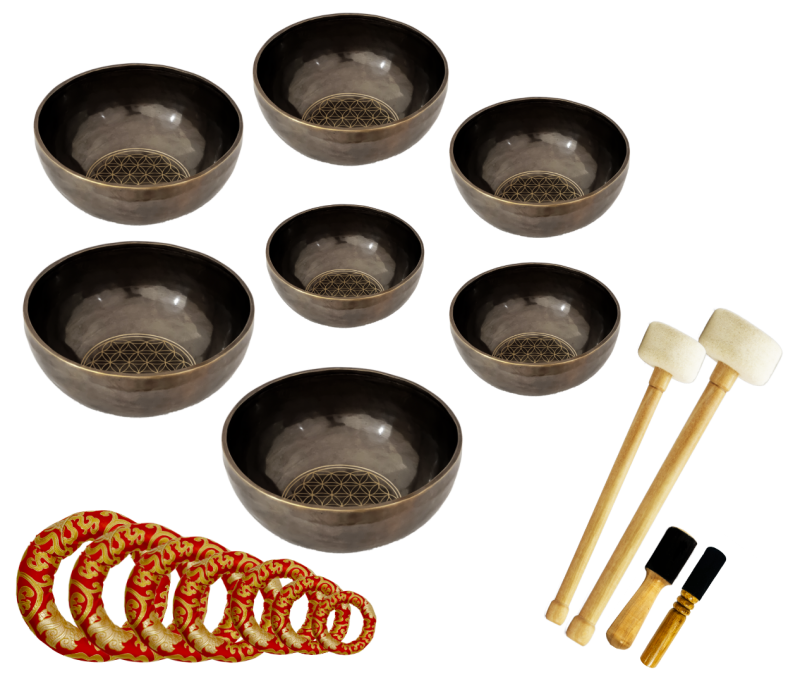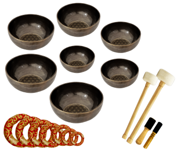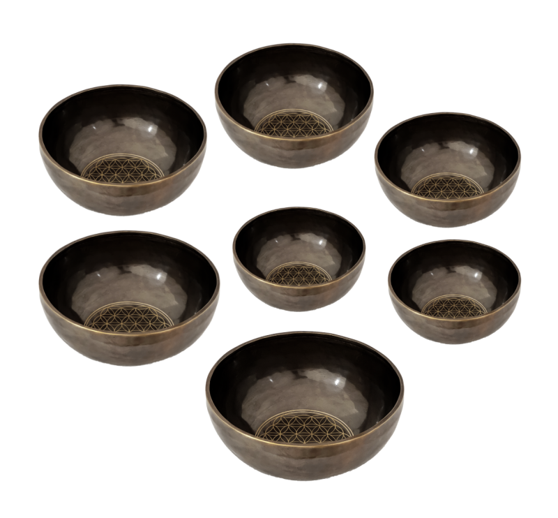 Hand Made Flower of life Set Singing Bowls are used for deep meditation,Yoga. Relaxing And also be used for a full body Meditation, Can be used individually Or Played Together all bowl, and create a nice and relaxed sound