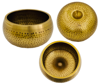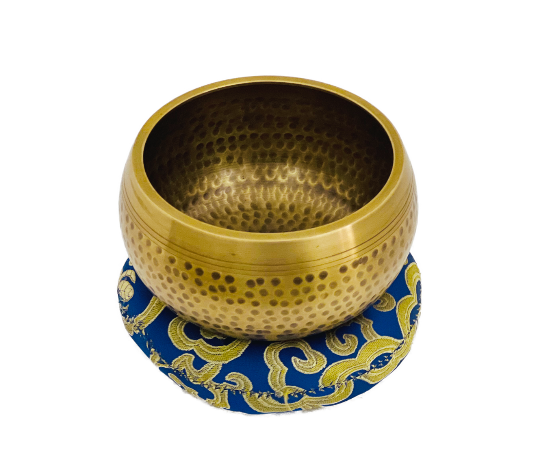 A singing bowl is a type of bell that produces a rich, harmonic sound when struck or rubbed with a mallet. Traditionally used in Tibetan Buddhist practices, these bowls are often associated with meditation, relaxation, and sound healing.When you gently strike or rub the rim of the bowl with a wooden or suede mallet, the bowl vibrates, creating a sustained, resonant sound.The vibrations can produce deep relaxation and a meditative state.